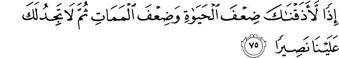 (75) In that case, We would have made you taste a double portion (of punishment) in this life and a double portion (of punishment) after death. And then you would have found none to help you against Us.
